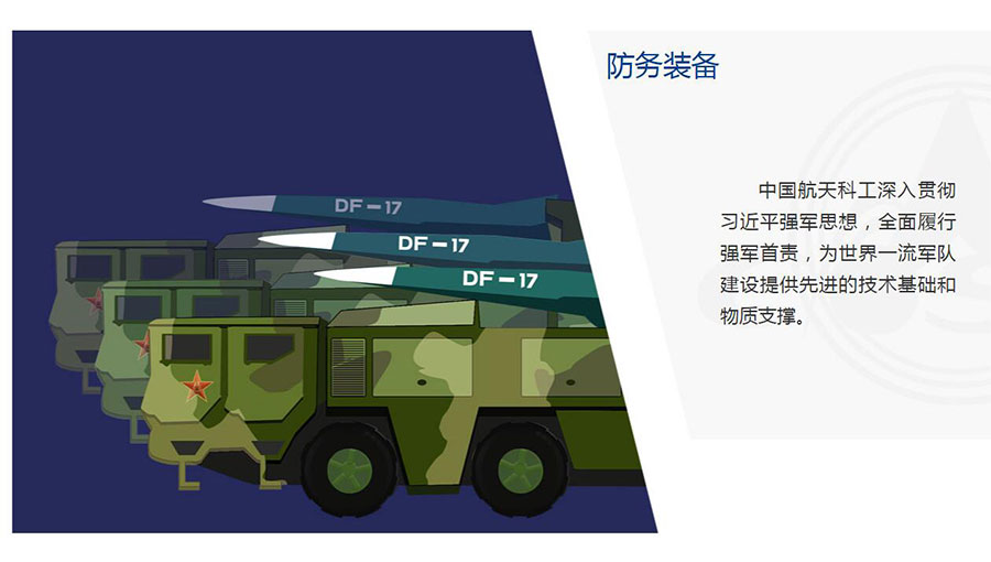 中國航天科工積極適應世界軍事發展趨勢和我軍軍事斗爭準備急需,深入貫徹新時代軍事戰略方針,聚焦建軍百年奮斗目標,著眼“陸軍、海軍、空軍、火箭軍、戰略支援部隊”復雜戰場環境下的作戰需求,加速戰略性、前沿性、顛覆性技術創新,加速武器裝備升級換代和智能化武器裝備發展,推動科研生產能力不斷增強、新型導彈武器不斷涌現、裝備科研生產體系更加完整,為人民軍隊捍衛國家主權、安全、發展利益提供先進的技術基礎、物質保障和強有力的導彈武器裝備戰略支撐。