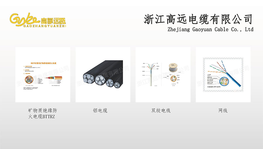 主要產品:“高掌遠跖?GZYZ”牌電力電纜,B1級阻燃電纜,環保型低煙無鹵電纜(電線),柔性防火電纜,防鼠防白蟻電纜,耐高溫(低溫)電纜,鋁合金電纜,控制電纜,計算機電纜,特種及特殊電纜等全系列產品