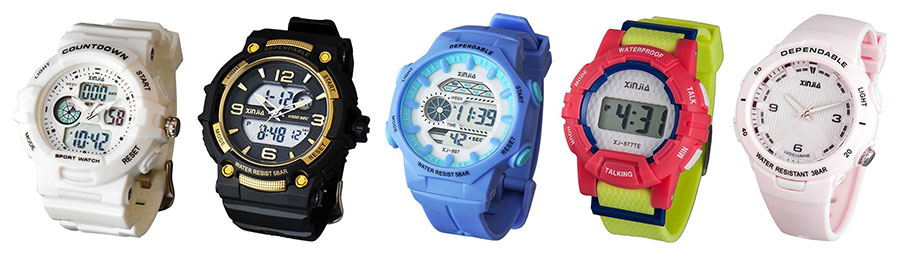 主要產(chǎn)品:“信佳”牌冷光防水運(yùn)動表、行針數(shù)顯二合一手表、計算器表、語音報時表、電子表、電子鐘