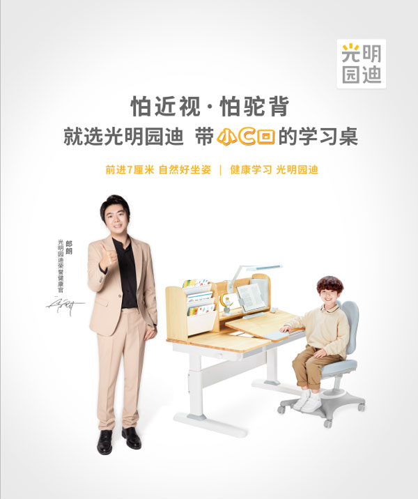 自2002年起,光明園迪便致力于為學齡兒童打造健康學習系統,提供“正姿護眼”學習裝備。圍繞兒童健康學習場景,光明園迪提出“三防一控”健康學習理念,打造了學習桌、正姿椅、潤眼臺燈、護脊書包等旗艦產品,先后取得200多項行業專利。專注兒童家具行業20年來,除了堅守產品的功能性與品質之外,光明園迪還注重消費者體驗,在國內擁有1600+銷售服務網點,3000+健康成長專家,覆蓋全國600+城市,服務超百萬家庭。