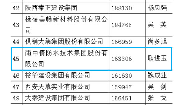載譽而歸 | 第45名,雨中情連續三年上榜陜西民營50強企業