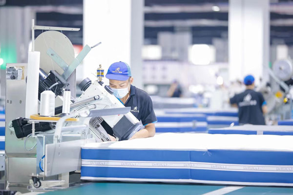 生產效率如虎添翼,每天生產近5000個型號、軟硬完全不同的床墊,原先需要1010人的工作量如今不超過600人即可完成,產能提升了30%-60%,生產周期縮短45.2%,解放人工的同時將每張床墊成本下降了9%-59%。