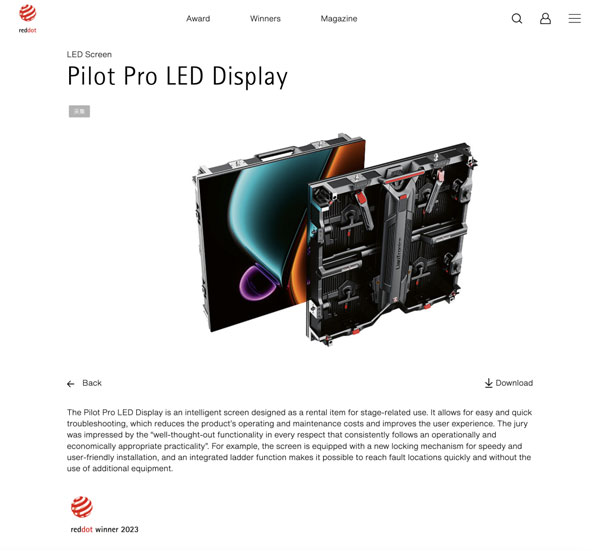 近日,2023年德國紅點設計大獎名單公布。聯建光電VAIII系列微間距顯示屏、Pilot Pro系列租賃顯示屏、BIM Plus-X系列室內商業顯示屏三款產品同時斬獲素有設計界“奧斯卡”之稱的紅點設計獎,這三款產品凝聚著全球前沿技術和創新設計,實至名歸。據統計,聯建光電是2023紅點獎中獲獎最多的LED顯示品牌。