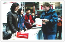 國家質檢總局組織的2004年3·15咨詢活動 現場掠影(圖為一位外國友人在接過 中國質檢協會人員散發的“3·15”國際 消費者權益日宣傳材料,連說“OK!OK!”) |
