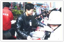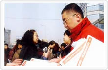 國家質檢總局組織的2004年3·15咨詢活動 現場掠影(圖為:北京市民們和來京旅游者 踴躍索取中國質檢協會工作人員散發的3.15 國際消費者權益日宣傳材料) |